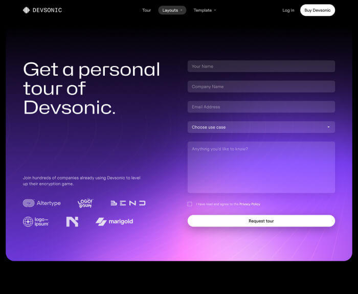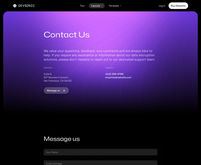 With a wide array of page templates and suite of comparison charts, pseudocode breakouts and testimonials, Devsonic this is the perfect template for your next high-tech enterprise.