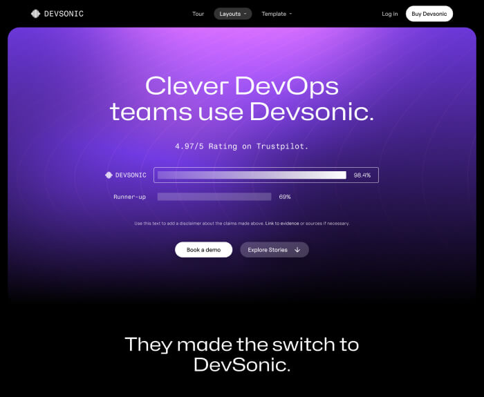 Mirroring the dark and moody nature of a sleek, high-performance server room, Devsonic is a premium Webflow template to promote an essential SaaS product aimed at the optimisation-obsessed world of DevOps.